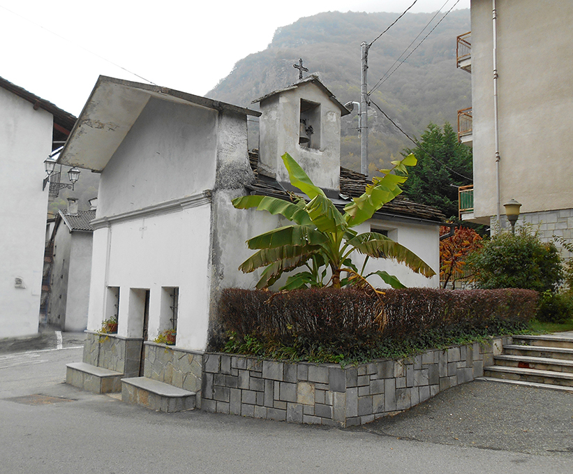 La piccola cappella, dedicata inizialmente a San Rocco e poi anche a Sant'Antonio abate, fu costruita verso il 1640 da un notaio, nobile del luogo, Antonio de Antonia, ed era detta "San Rocco in Valeris". Nei secoli successivi venne più volte rimaneggiata. All'interno vi sono due affreschi raffiguranti San Sebastiano e San Maurizio, già citati nella visita pastorale del 1647; inoltre sono conservate tre belle tele di fattura ottocentesca raffiguranti Santa Lucia, Santa Liberata e San Paolo apostolo.