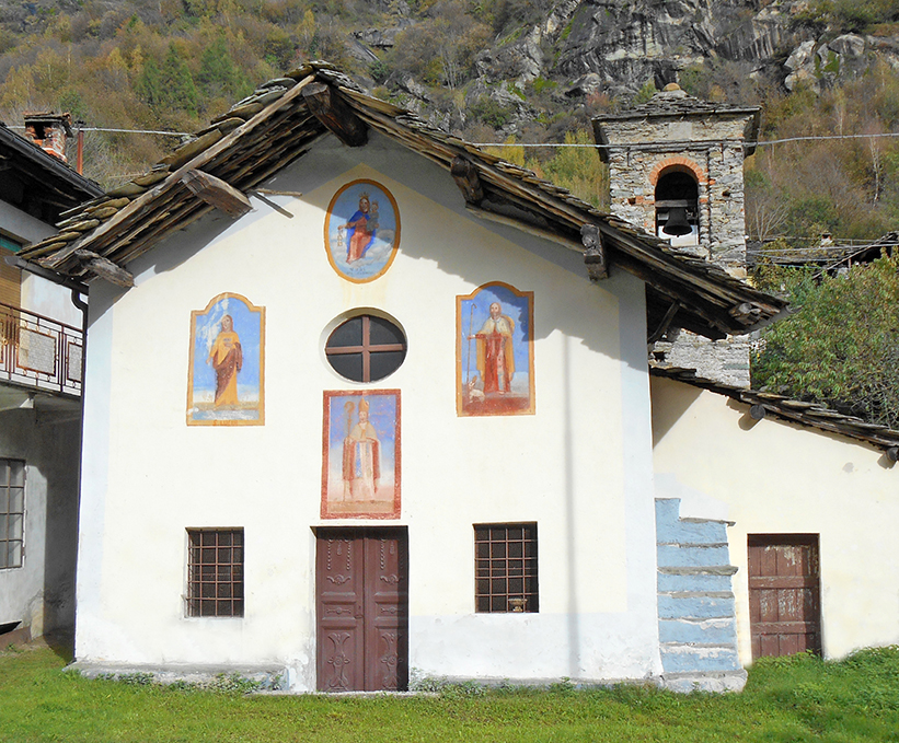 La prima cappella dedicata a San Rocco, venne edificata tra il 1660 e il 1670. Nel 1826 fu demolita perché ormai fatiscente e troppo esigua e venne ricostruita dalla parte opposta della strada dov'è attualmente. Nel 1874 fu dedicata alla Madonna del Carmine e Santa Lucia. La facciata presenta alcuni affreschi con figure di santi del 1882 e l'interno conserva una pala ottocentesca. Il campanile in pietra, posto a fianco della sacristia, fu edificato nel 1870.