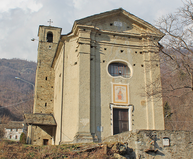 La bella chiesa di Frachiamo fu costruita tra il 1778 e il 1781, su progetto dell'architetto Francesco Antonio Bruna, laureato alla Regia Università di Torino, a seguito delle ormai precarie condizioni della vecchia cappella già citata nel 1616. Nell'anno 1779 compare sulla scena un Conte di Castellamonte non meglio identificato; forse era capitato a Frachiamo per andare a caccia o per qualche altro motivo che si ignora. Sta di fatto che questo nobile prese a cuore la sorte dell'erigenda chiesa di Frachiamo e sembra abbia preso lui stesso contatti con Francesco A. Bruna, l'architetto che nel 1775 aveva progettato la ristrutturazione del palazzo comunale di Castellamonte. E di certo questo Conte contribuì anche finanziariamente, perché nonostante la loro disponibilità e volontà, da soli, i frazionisti di Frachiamo, forse non ce l'avrebbero fatta. Questo esimio mecenate è ricordato su una pietra assai rozza, murata sulla facciata della chiesa. È in parte illeggibile e assai confusa: "Il promotore e fondatore della prima pietra fu il [...] Combetta Conte di Castellamonte. Lì, 7 ago 1779". L'interno presenta la volta affrescata ed un altare con pala effigiante il miracolo della nevicata sul monte romano dell'Esquilino. Nel transetto destro si erge l'altare ligneo, di fattura settecentesca, dedicato a Santa Lucia. Lo slanciato campanile fu ricostruito nel 1866. Nel prato innanzi al sagrato si può vedere l'inizio della vecchia mulattiera che congiungeva la borgata con il capoluogo di Sparone. Poco distante dalla chiesa è visibile la "Casa del Cappellano", sede della scuola elementare, già citata nella visita pastorale del 1765; la scuola elementare, sussidiata dal Comune, rimase attiva fino agli anni '80.